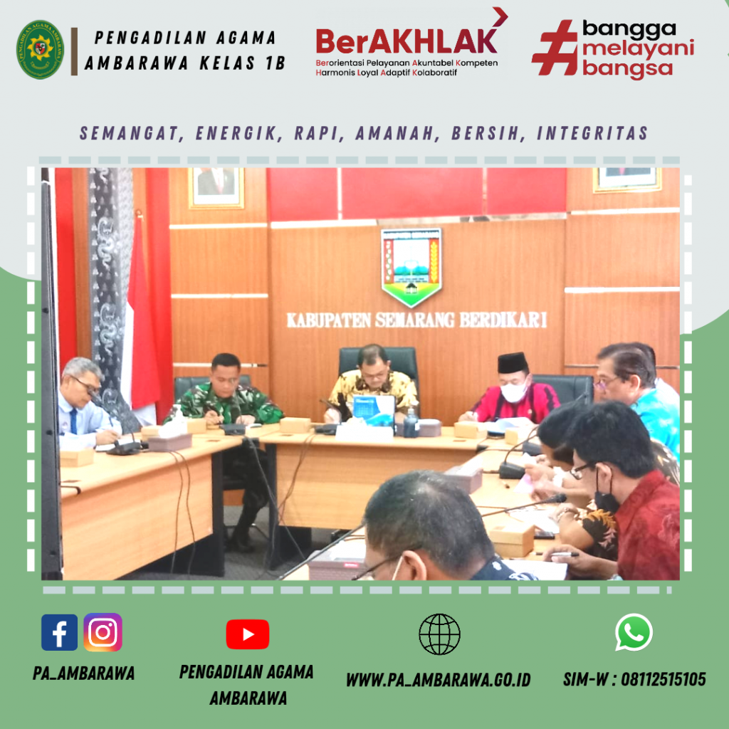 RAPAT KOORDINASI FORKOPIMDA Pada hari Kamis tanggal 2 Juni 2022, Ketua Pengadilan Agama Ambarawa, Bapak Ishak Lubis, S. Ag mengikuti kegiatan Rapat Koordinasi yang diselenggarakan oleh Forum Pimpinan Daerah (FORKOPIMDA) bertempat di Kantor Bupati Kabupaten Semarang. Rapat koordinasi tersebut membahas berbagai hal terkait dengan penanganan serta langkah-langkah yang harus dilakukan agar penyebaran Penyakit […]