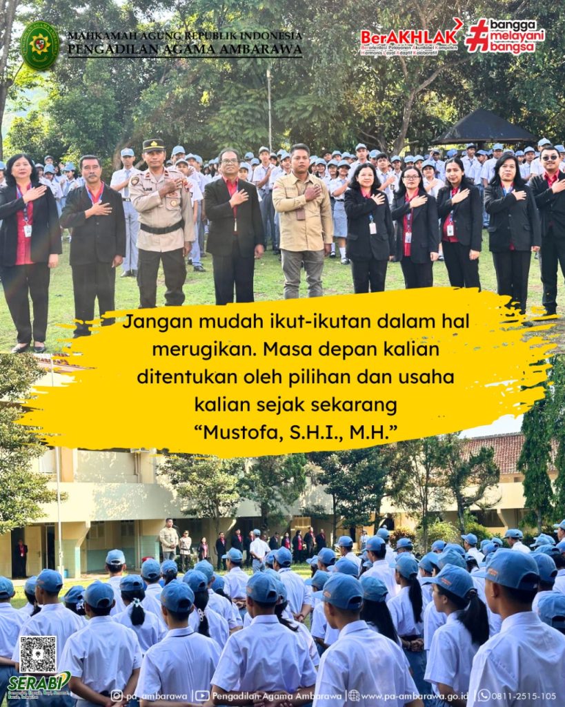 Ambarawa, 22 September 2025 – Dalam rangka mendukung program pembinaan generasi muda dan menciptakan lingkungan sekolah yang kondusif bagi proses belajar, Pengadilan Agama Ambarawa turut serta dalam kegiatan Forkopimda Kabupaten Semarang melalui agenda pembinaan di sekolah-sekolah.