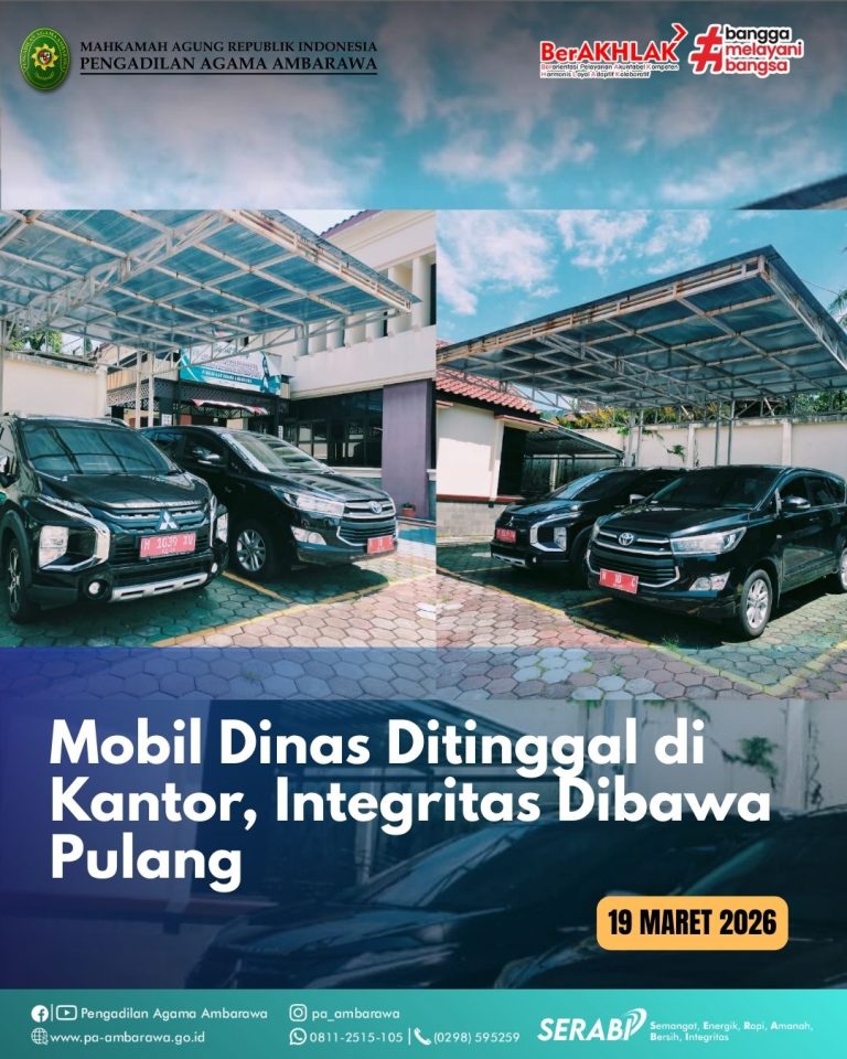 Ambarawa – Meninggalkan kendaraan dinas di kantor bukan semata soal kepatuhan terhadap aturan, tetapi juga bentuk kehati-hatian agar tidak bersinggungan dengan potensi penyalahgunaan wewenang, sekecil apa pun itu. “Ini bukan soal berlebihan. Ini soal menjaga batas antara amanah dan godaan,” kata Ketua PA Ambarawa, Muh Irfan Husaeni.