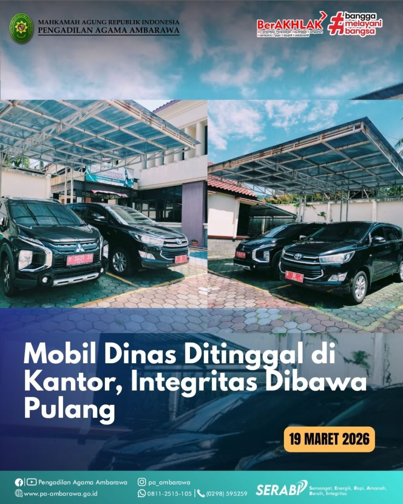 Saat sebagian pegawai bersiap menempuh perjalanan mudik, mobil dinas Ketua dan Wakil Ketua PA Ambarawa justru tetap terparkir rapi di garasi kantor. Diam, namun seolah menyampaikan pesan: tidak semua yang bisa digunakan, harus digunakan.