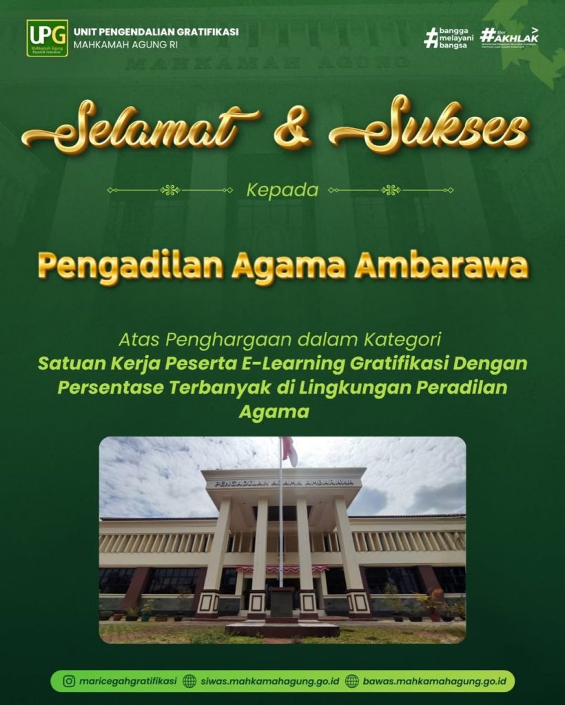 Penghargaan ini menjadi motivasi bagi Pengadilan Agama Ambarawa untuk terus meningkatkan kualitas pelaksanaan program pengendalian gratifikasi, memperluas literasi anti-korupsi, serta menjaga budaya kerja yang berintegritas dan profesional dalam memberikan pelayanan kepada masyarakat.