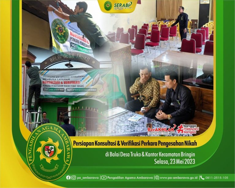 Tim Konsultasi dan Verifikasi Pelayanan Terpadu dari PA Ambarawa melakukan persiapan di Aula Kantor Kecamatan Bringin dan di Balai Desa Truko serta melakukan sosialisasi terkait kegiatan “Konsultasi dan Verifikasi Perkara Pengesahan Nikah” kepada perangkat Desa setempat.