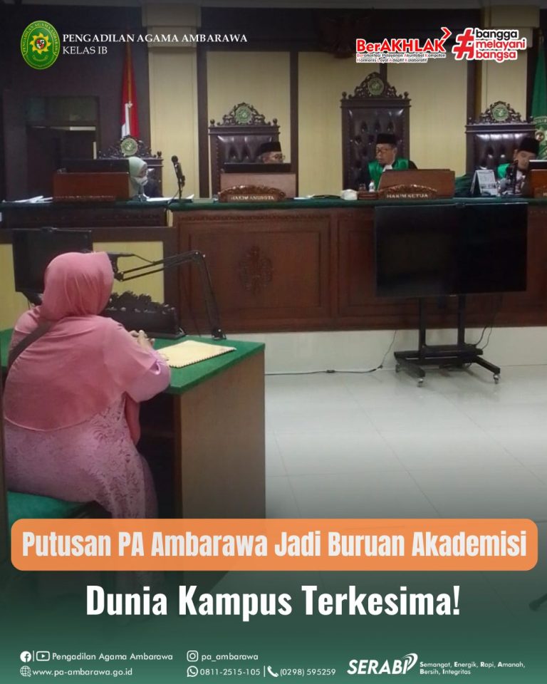 AMBARAWA — Tidak main-main, ini benar-benar luar biasa. Putusan Pengadilan Agama Ambarawa kembali menyita perhatian dunia akademik. Belum lama diputus, Perkara Nomor 425/Pdt.G/2025/PA.Amb tentang perkawinan beda agama langsung diburu untuk dijadikan bahan penelitian tugas akhir. “Ini sangat jarang terjadi, dan putusan seperti ini selalu menggugah rasa ingin tahu akademisi,” ujar salah satu dosen pembimbing yang enggan disebutkan namanya.
