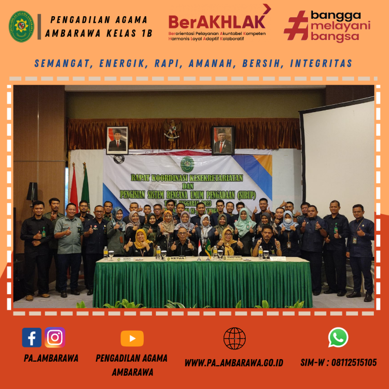 Bertempat di The Oxalis Regency Hotel Magelang, Kasubbag PTIP Martasaputra A.R.U., S.Kom., M.M dan M. Rajif Andriyanto, S.H. (PPNPN) Pengadilan Agama Ambarawa mengikuti kegiatan Rapat Koordinasi Kesekretariatan dan Pengisian Aplikasi SIRUP (Sistem Informasi Rencana Umum Pengadaan) berbasis web, yang dilaksanakan selama dua hari pada 14-15 Desember 2022. Acara dibuka oleh KPTA Semarang Drs.H. Mohammad Yamin Awie, S.H., M.H.