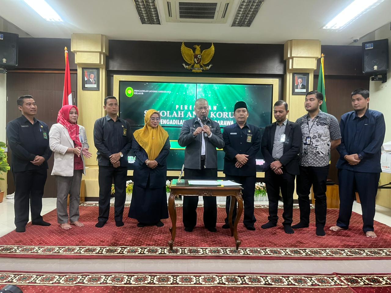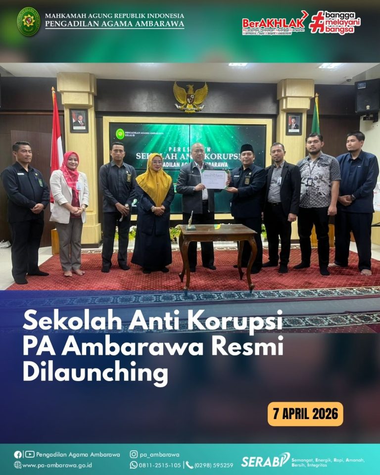 Ambarawa, “Dengan mengucapkan bismillahirrahmanirrahim, pada hari ini Selasa, 7 April 2026, saya Dr. Mohamad Jumhari, S.H., M.H., Wakil Ketua Pengadilan Tinggi Agama Semarang, secara resmi melauching Sekolah Antikorupsi Pengadilan Agama Ambarawa.”