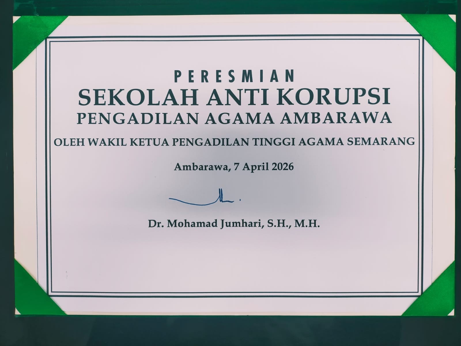 Komitmen tersebut tidak berhenti pada tataran wacana. Pada 2024, Pengadilan Agama Ambarawa dinobatkan sebagai satuan kerja antikorupsi dan antigratifikasi oleh Mahkamah Agung Republik Indonesia. Setahun kemudian, pada 2025, lembaga ini kembali meraih predikat sebagai pelaksana pengendalian gratifikasi terbaik.