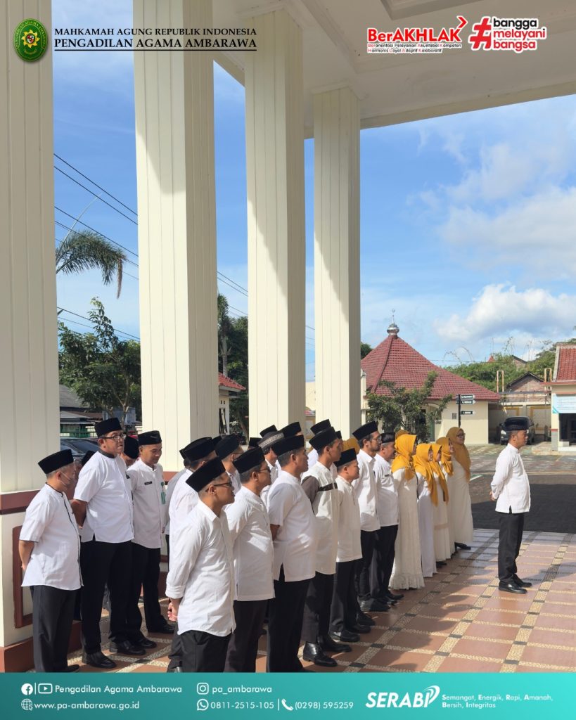 Pagi yang khidmat menyelimuti halaman Kantor Pengadilan Agama Ambarawa. Seluruh aparatur, mulai dari pimpinan, hakim, hingga staf, tampak kompak dan harmonis dalam balutan busana muslim bernuansa putih bersih saat melaksanakan agenda apel singkat pagi ini.